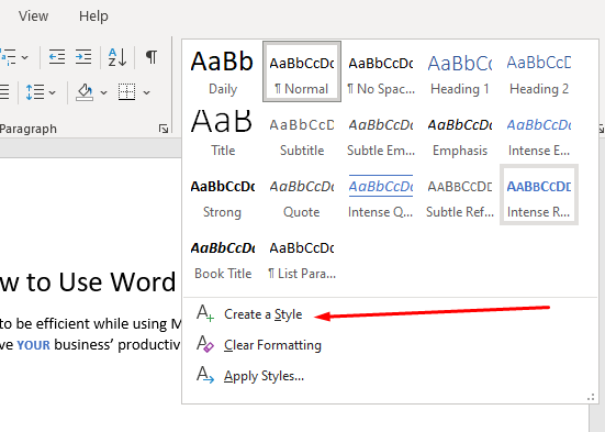 Fill in the information in the box and the style you’ve created will now be on the Quick Styles menu.